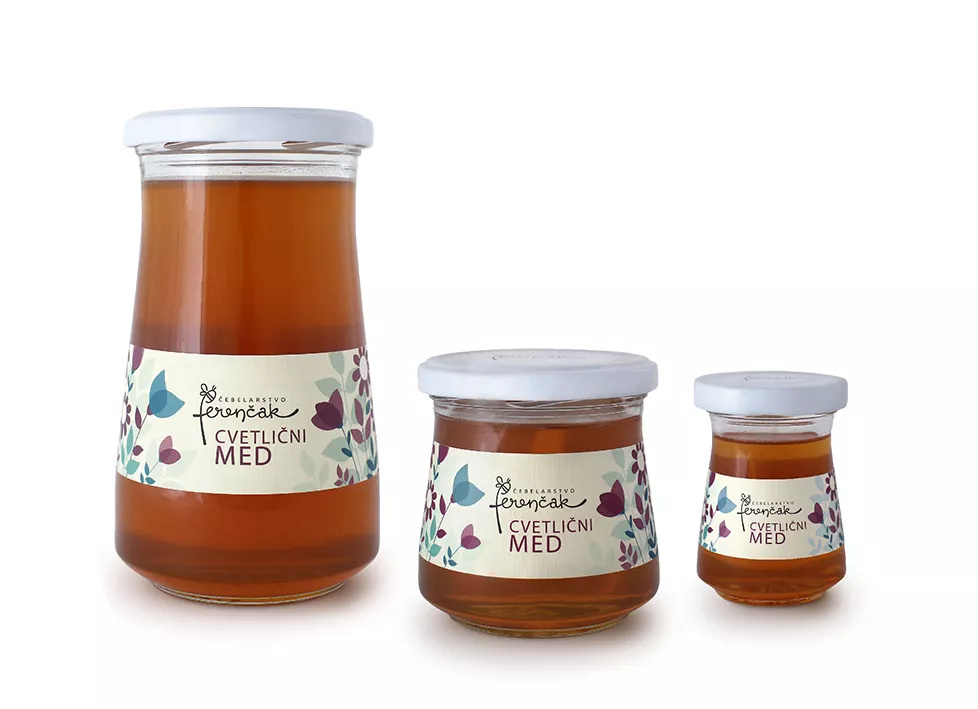 Naravni slovenski cvetlični med svetlejše barve in prijetno sladkega okusa. Na voljo kot tekoč med ali kristaliziran strd. Pakiranje 900 g ali 430 g.