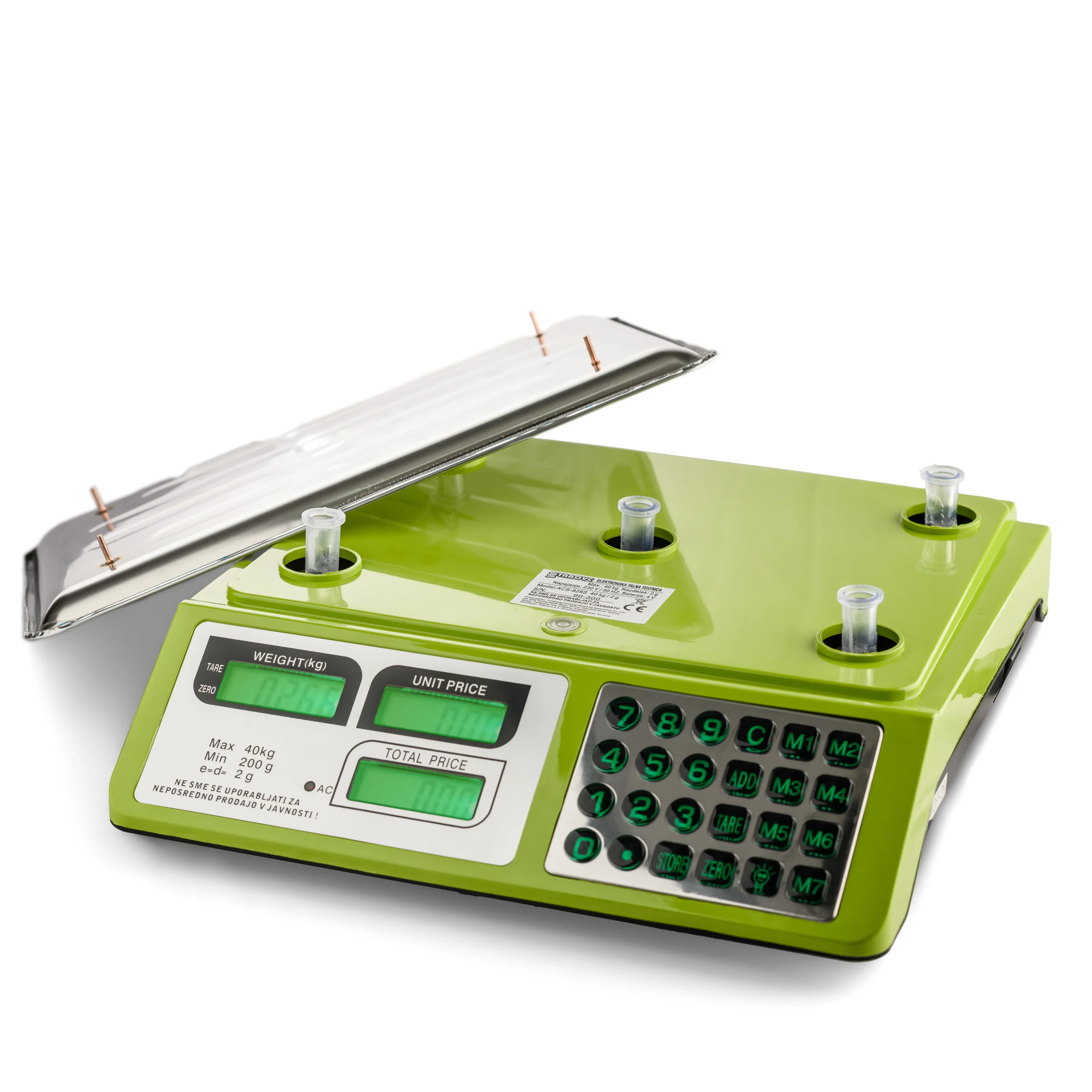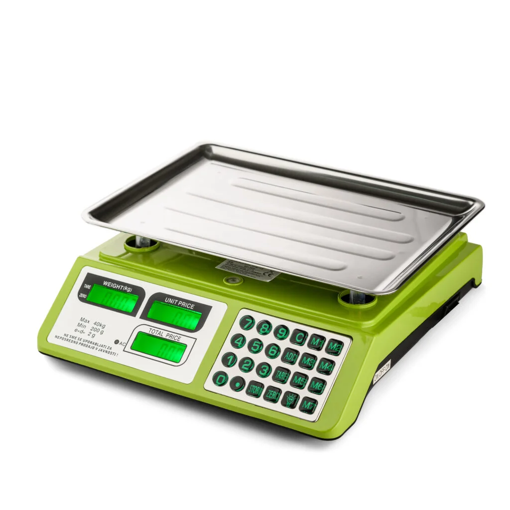 Omogoča natančno tehtanje do 40 kg z razdelkom 2 g, hkrati pa ponuja funkcije izračuna cene in shranjevanja cen,