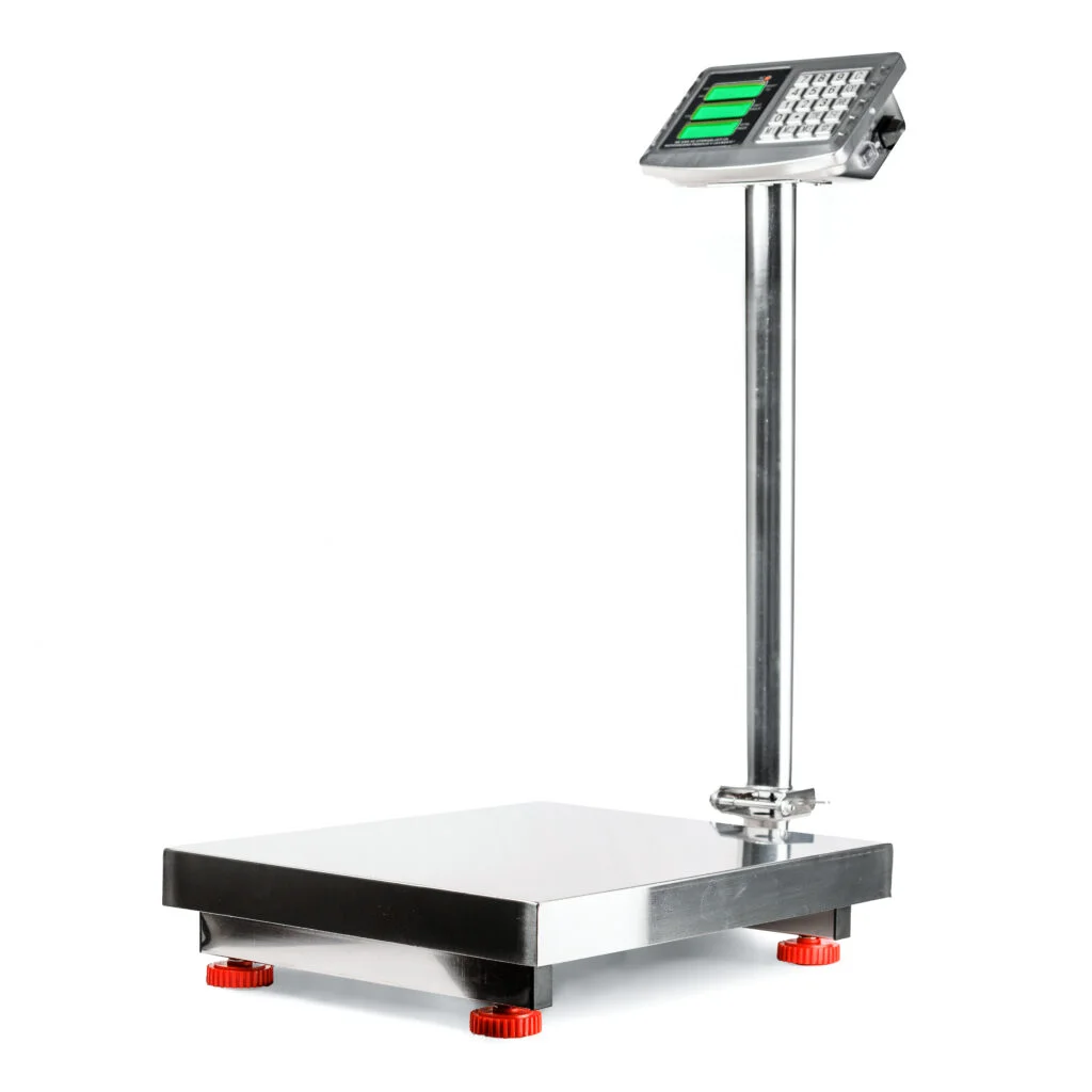 Digitalna talna tehtnica TCS-SS do 150 kg z razdelkom 20 g, izračunom cene, obojestranskim LCD zaslonom in zložljivo konzolo.